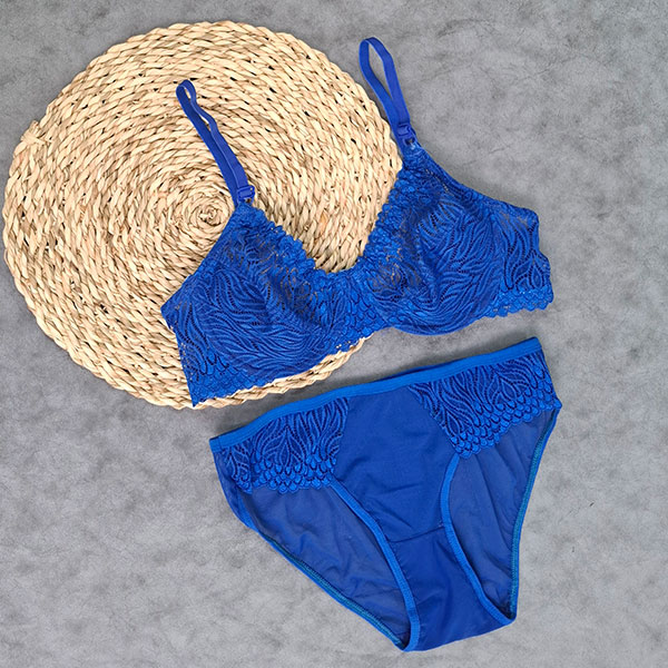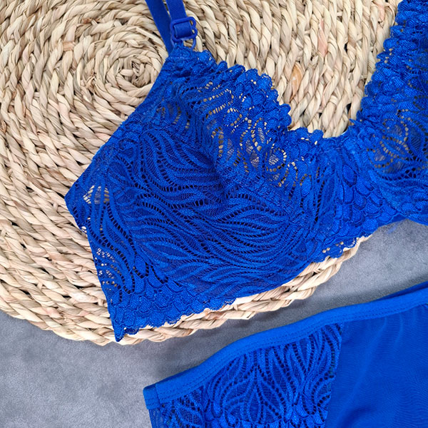 ست لباس زیر گیپور هارنس دار مدل نسترن(آبی)